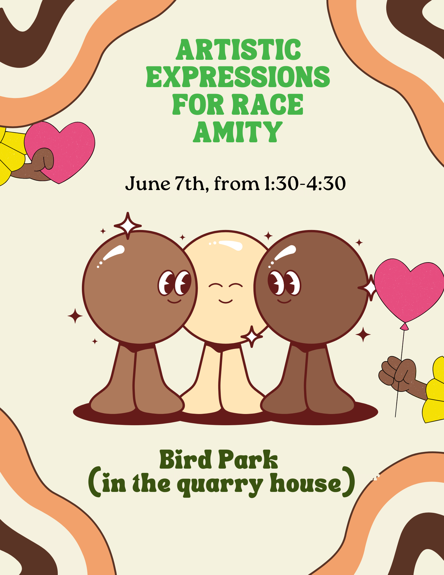 Please join us for Artistic Expressions for Race Amity Saturday June 7th from 1:30-4:30 at Bird Park (in the quarry house) in Kankakee..